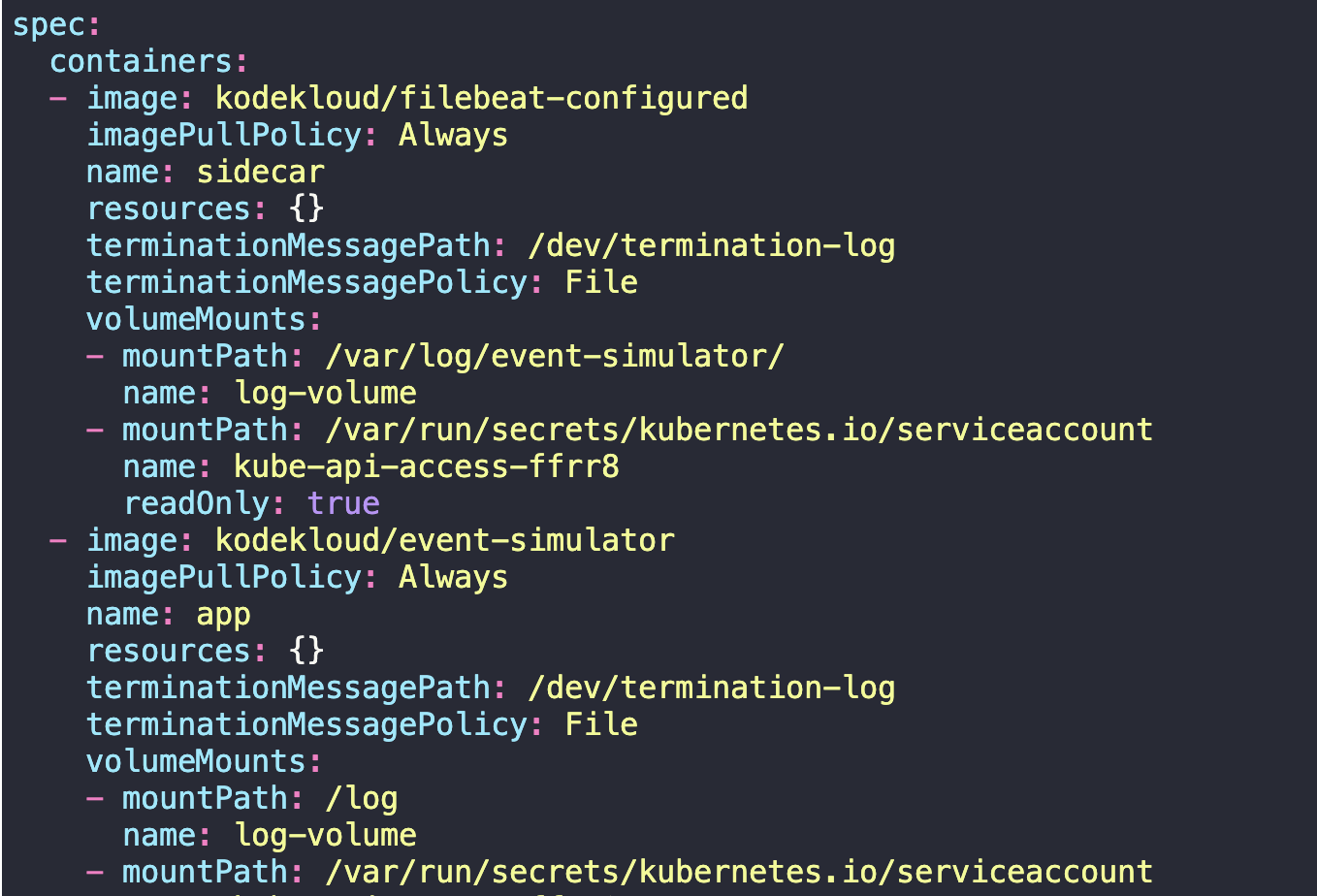 위 코드는 Deployment의 template.spec 안쪽에 작성되어야 함